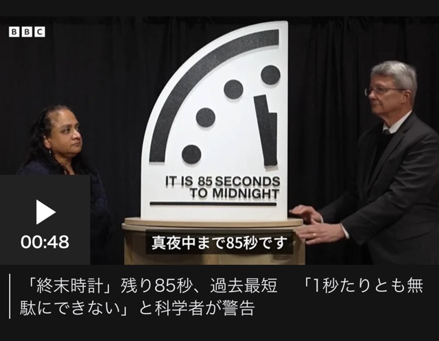「終末時計」、午前0時まであと85秒に